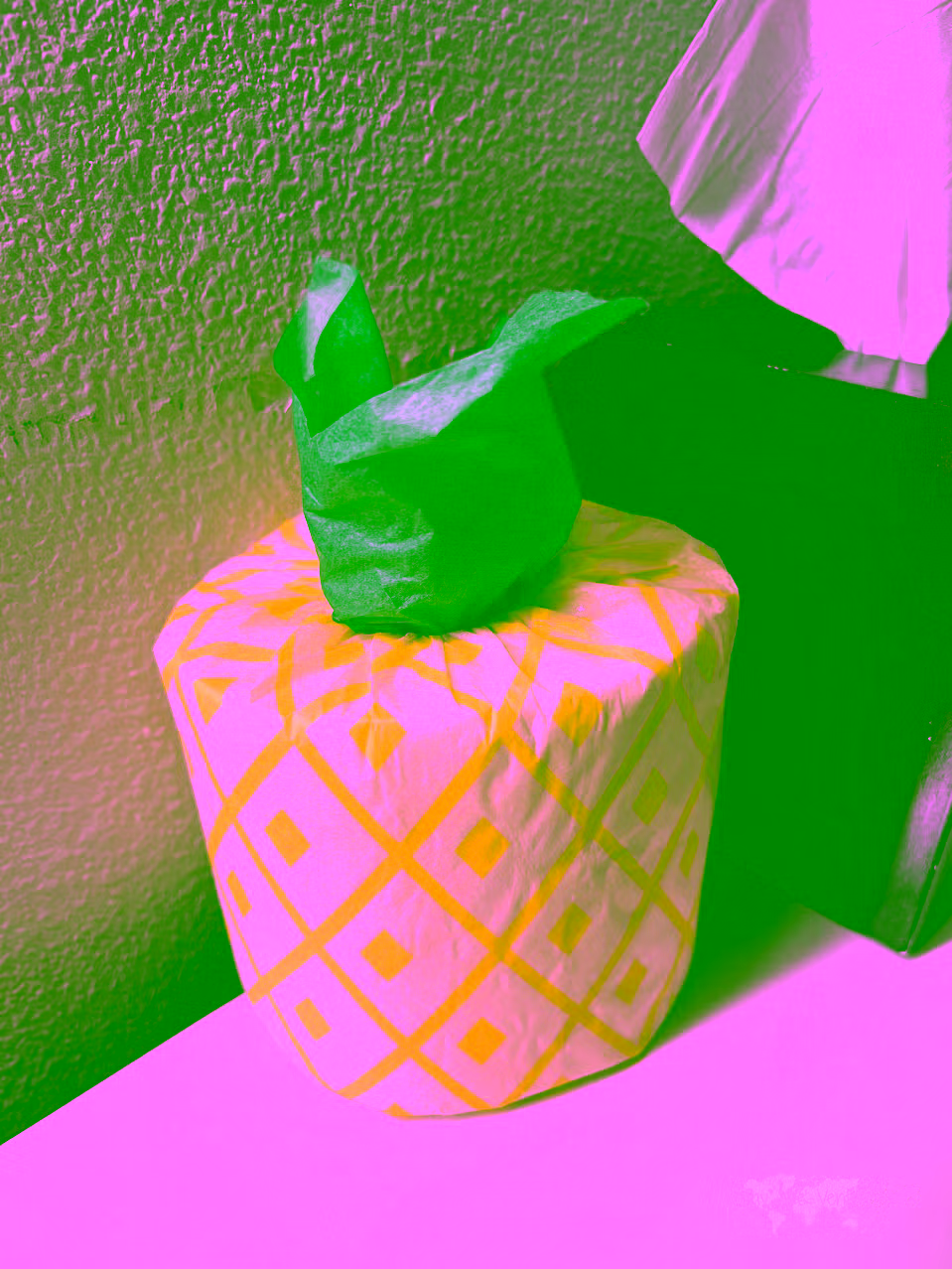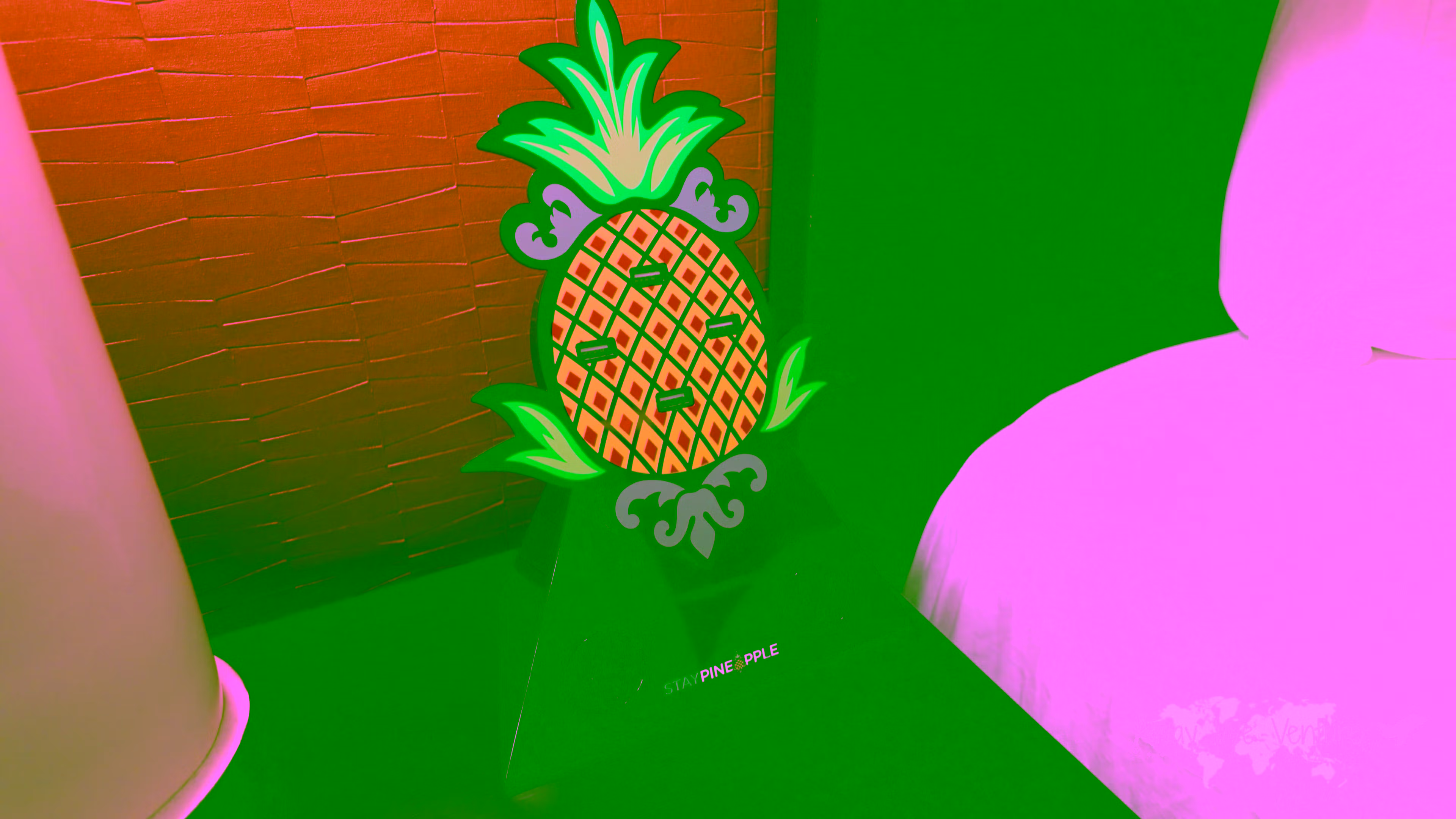 I find it hilarious that even the extra toilet paper roll is pineapple decorated themes as well. They even got the top part right!