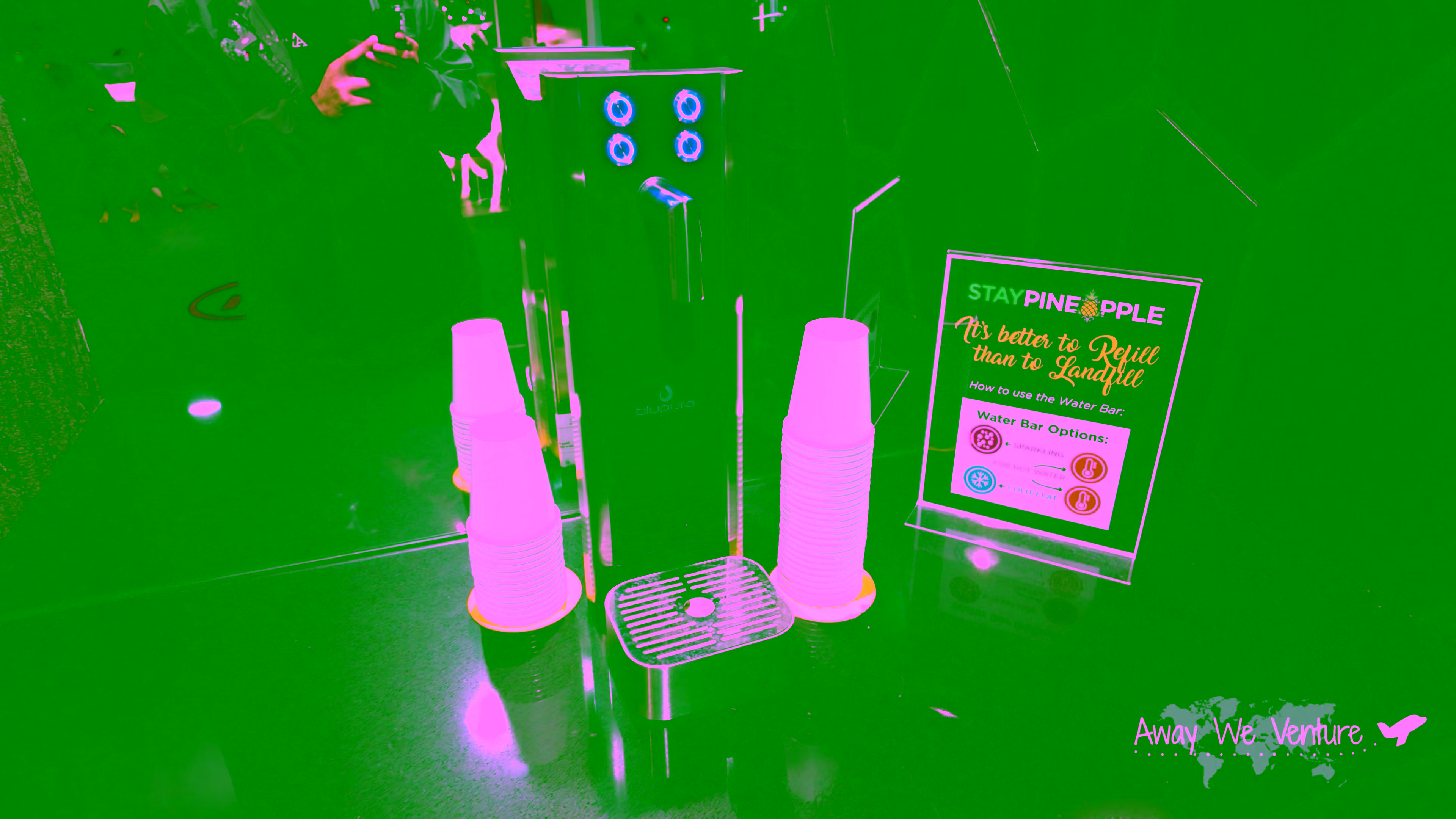 They had a water bar where you can refill your water bottles for free. The water bar even had options to make it cold and sparkling water. Sparkling water is usually never given at hotels I’ve stayed at in the past. This was right next to the coffee in the lobby.