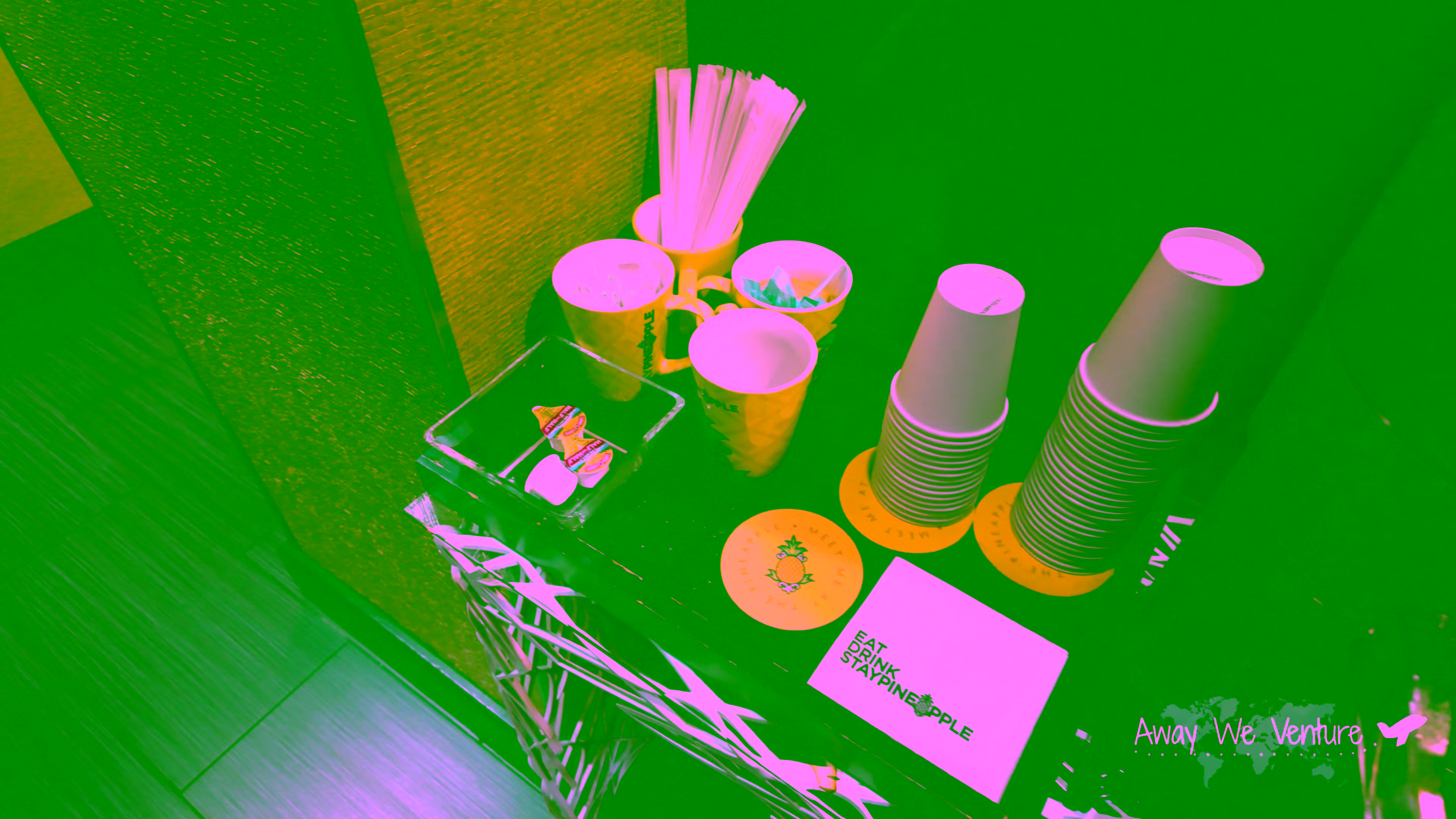 Since we had three people in our hotel room we were given three coasters that acted as complimentary drink vouchers. There’s fridge in the lobby that you can use to redeem for a free drink. The drinks ranged from anything pineapple canned seltzers, pineapple drinks, and sodas! You can take your pick. It was certainly a nice gesture.