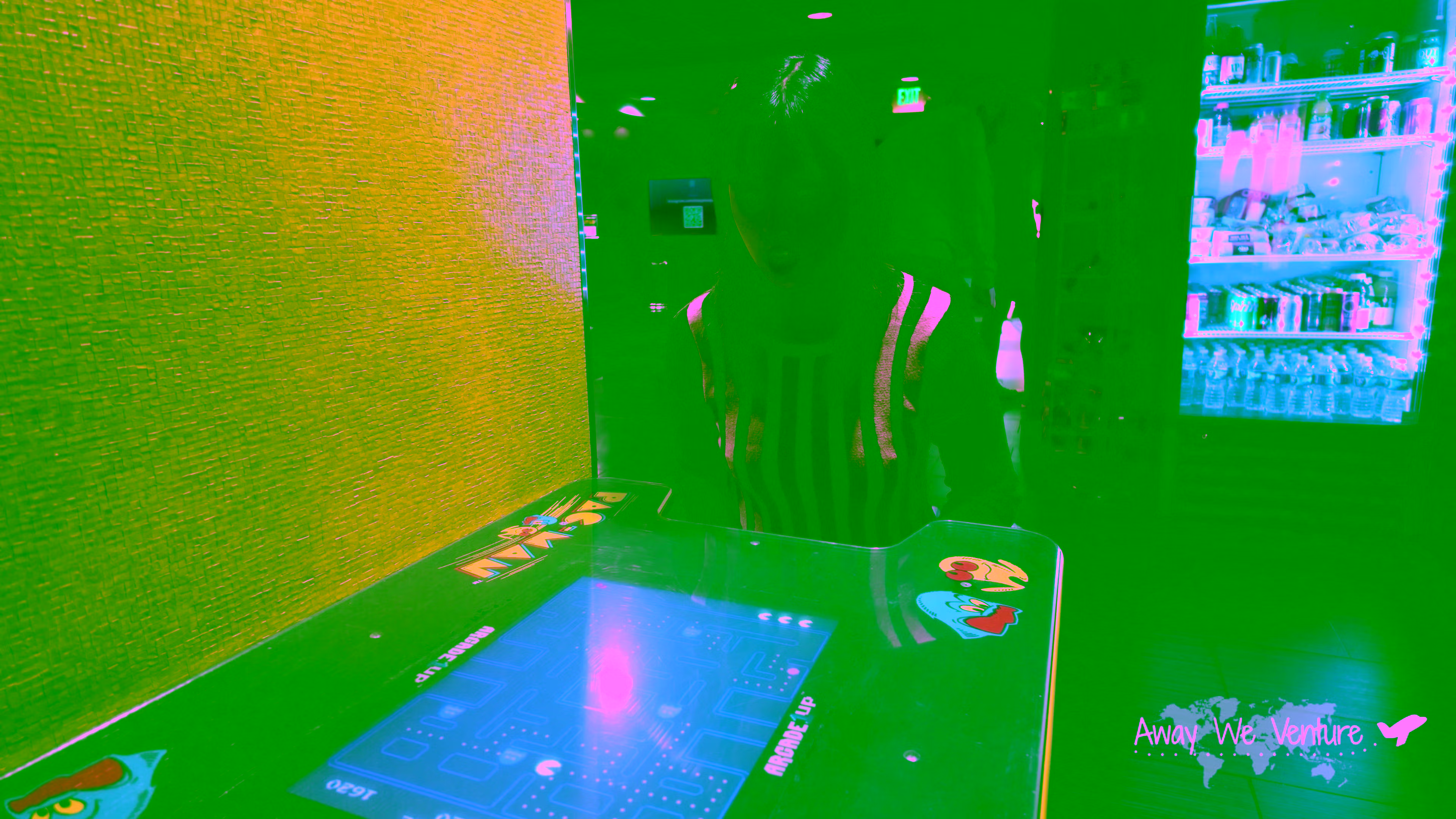 Located throughout the entire lobby there’s multiple old school retro arcade game machines and a big shuffleboard you can use to play with friends or other hotel guests.