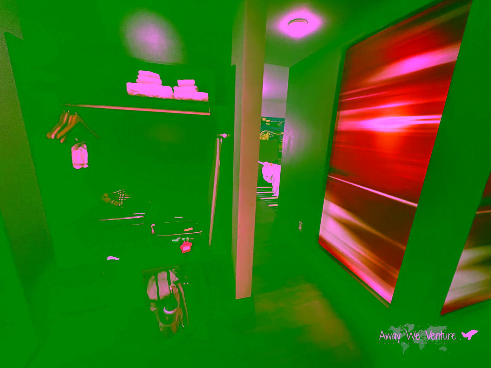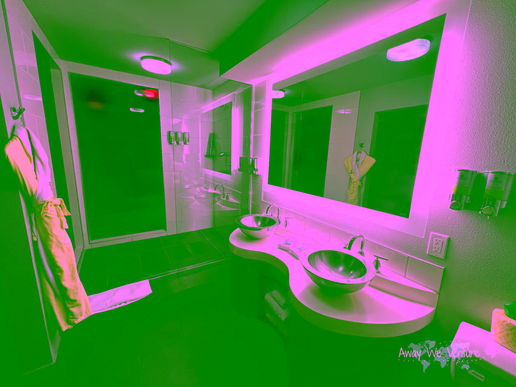 The restroom / bathroom is a walk in shower. I will admit it was a little bit weird that there wasn’t a door. But I’ve been seeing this at many modern hotels. For the suite they also provide two pineapple themed bathrobes that you can use and wear.