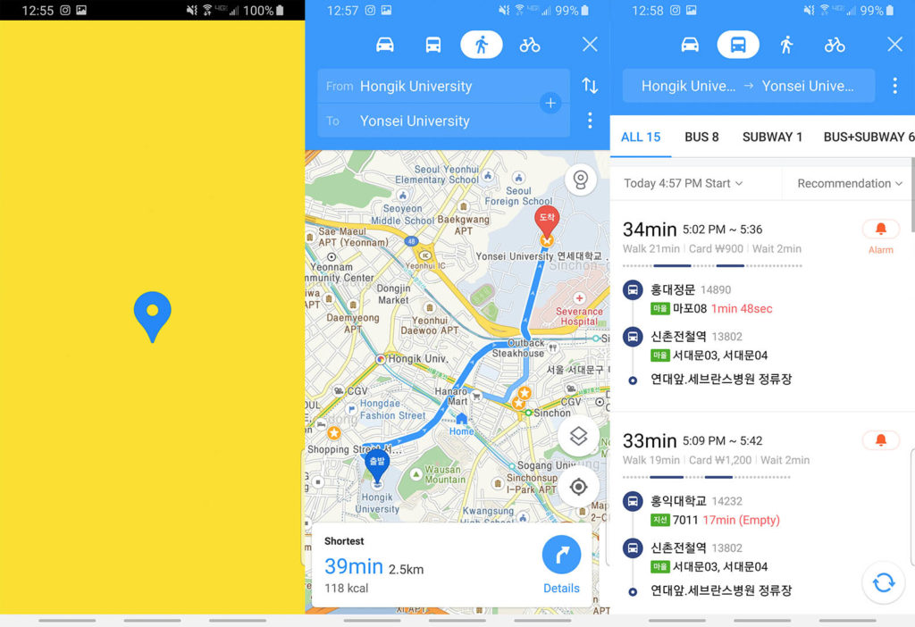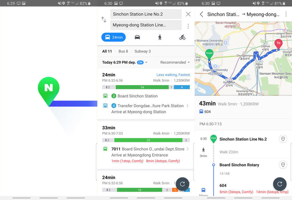 Three years ago when I was in Korea Naver Maps was called Daum Maps and it was not English friendly at all. I was told that Naver Maps is now English friendly and I can definitely recommend it to my friends and family who visit Korea. You can enter both Korean and English addresses. One of the nice things about this app is the fact that you can decide to show routes taking the subway, the bus, or both! Naver Maps also has a built in sensor on buses in Seoul which tell you whether or not the on-coming buses arriving at your stop is “Comfy” or full “Crowded”. Naver Maps will also tell you how much fare is riding on the bus and subway.