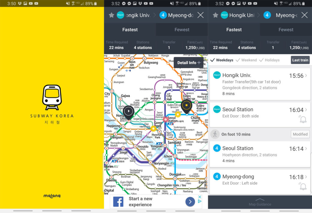 The Subway Korea app is my main source of navigating around Seoul. Reading the Korean Metro subway map can be quite scary if it’s your first time. This app makes it really easy to search subway stations. It lets you set a beginning and end point. What’s really useful is it also tells you which transfers/lines you will have to take. How many minutes it will take. How much your subway fare will cost.